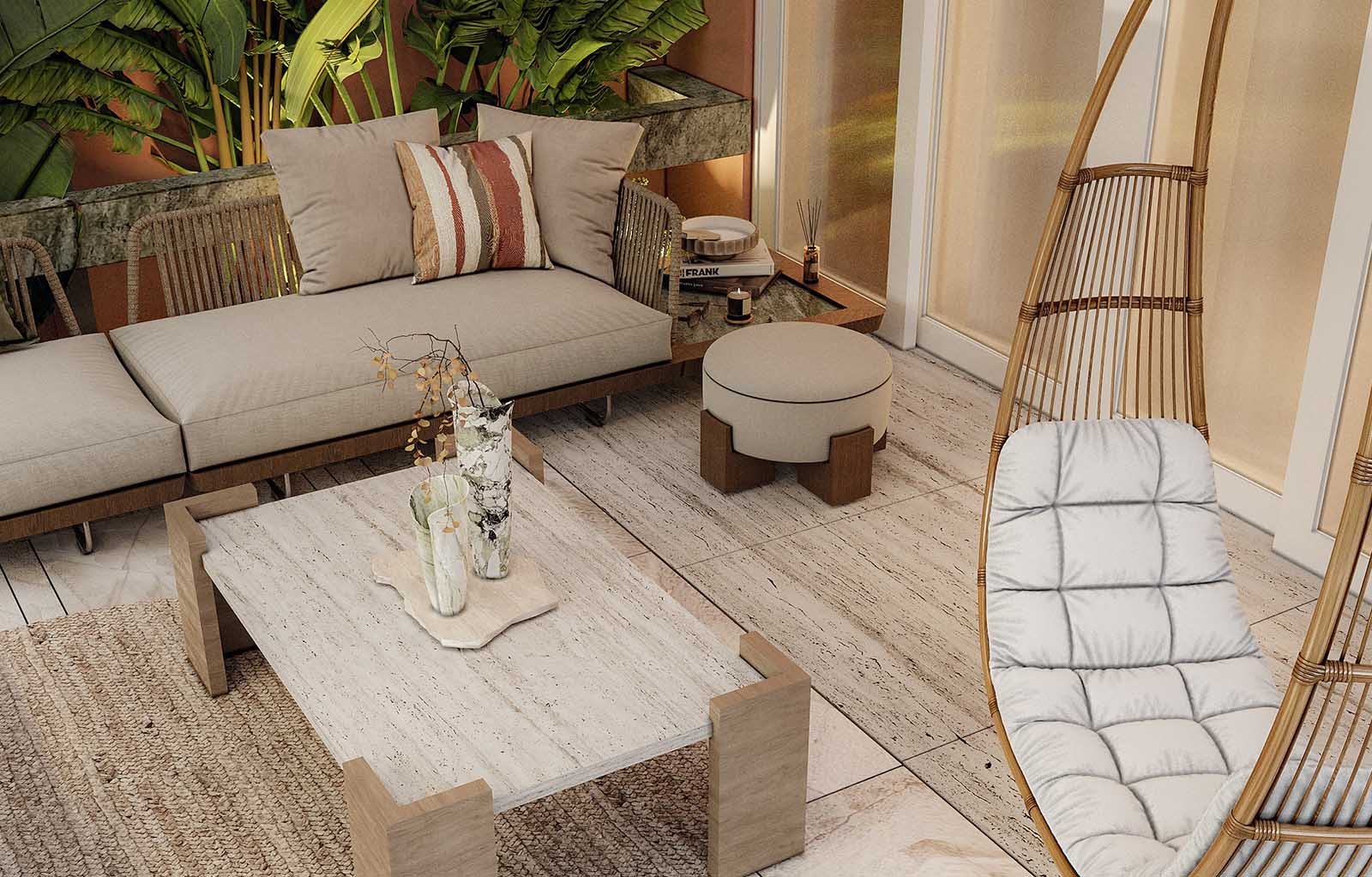The landscape and rooftop have been redesigned with a luxury modern concept and a bright, welcoming atmosphere, reflecting the client’s preferences. Premium materials such as thermal wood and travertine marble are used to enhance elegance and warmth.