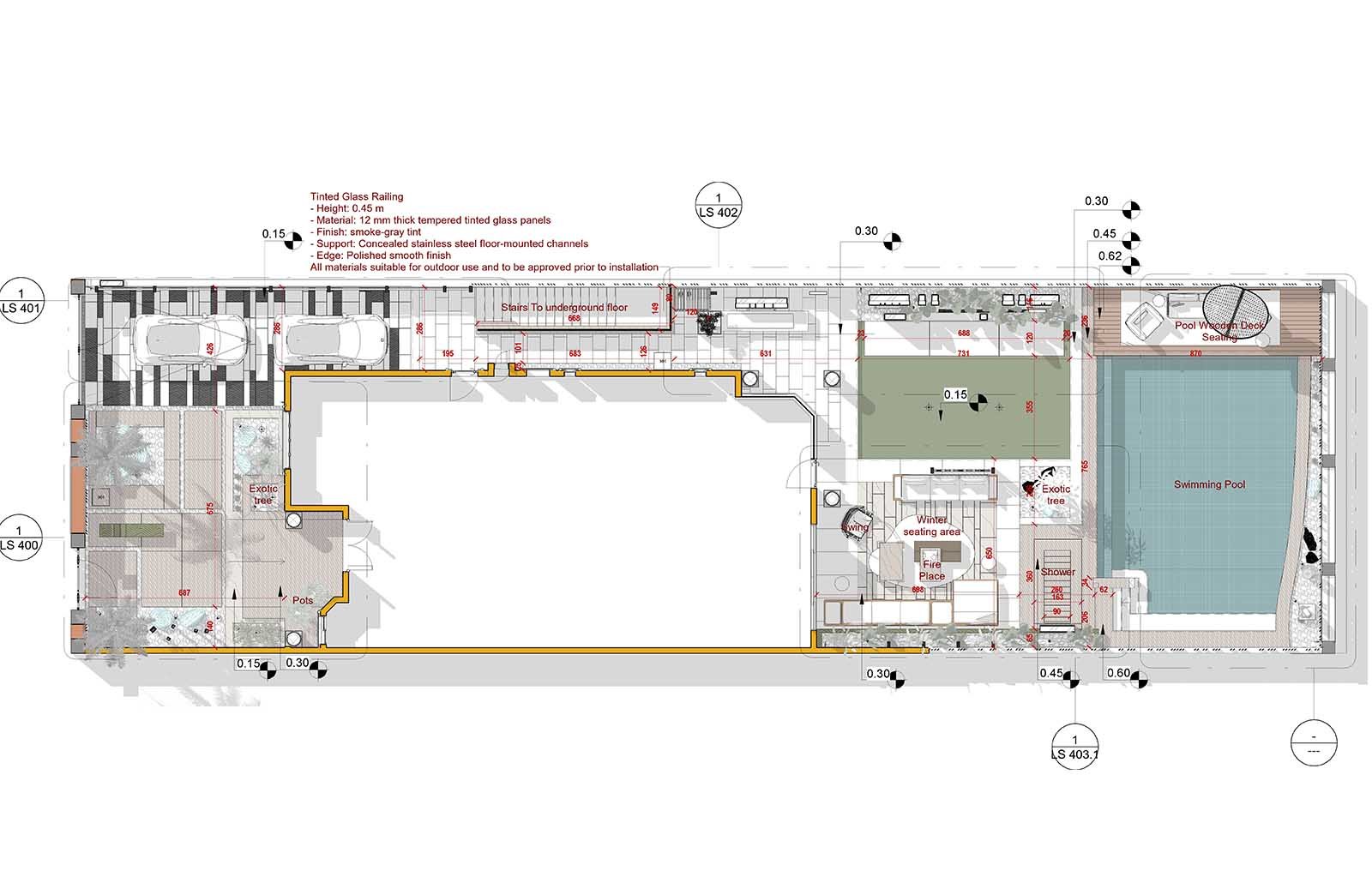 The spaces are planned as comfortable luxury areas with integrated seating for relaxation and social use. A rich soft-scape design defines the character of the project, featuring exotic plantation elements including bonsai and olive trees, supported by lush layered greenery.