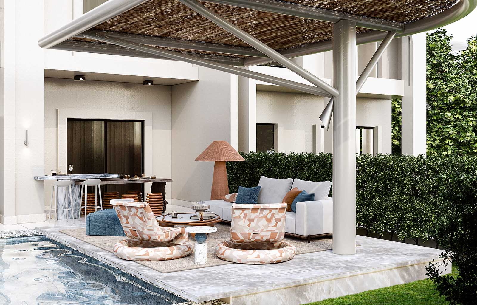 The design harmonizes with the villa’s artistic and modern aesthetic, ensuring that both landscape and rooftop areas contribute to a well-balanced, luxurious, and welcoming home.