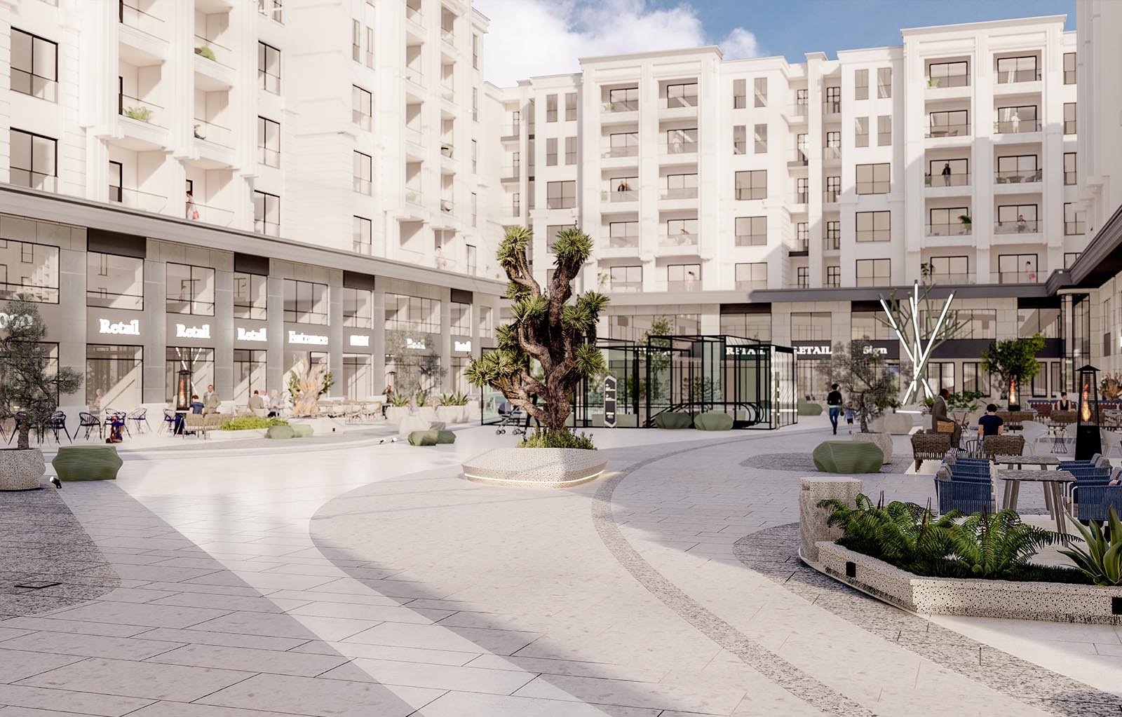 DESIGN SECTOR was appointed for the design of this outdoor mall building. Comprising of Residential, Admin and Commercial buildings, this design follows a contemporary modernized look. DESIGN SECTOR utilised the introverted Architecture to create plaza landscapes for the commercial as well as administrative sectors. The design intent was to create an innovative design and environment to align with the the multi-use of the building.